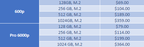 The price difference between models and Pro 6000p and 600p at the same capacity almost symbolic - $ 10.