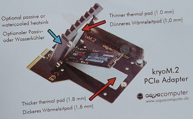 Aqua Computer offers a water block for cooling type M.2 drives (2016-08-29)