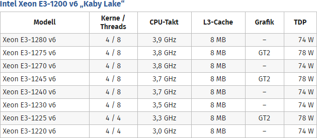 Intel Kaby Lake server processors Features