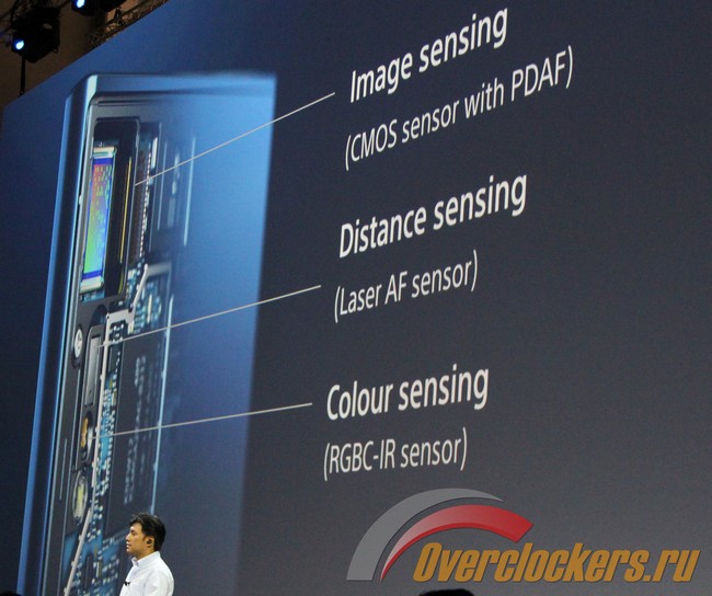 The greatest emphasis in the presentation was made precisely on the Xperia XZ main chamber.  This camera is based on a 23-megapixel image sensor, a hybrid AF system (phase autofocus CMOS-sensor and a separate laser sensor) and is equipped with a sensor RGBC-IR colors.  Note that, according to  Sony, the new product is the first smartphone in the world, whose camera got 5-axis optical image stabilization.