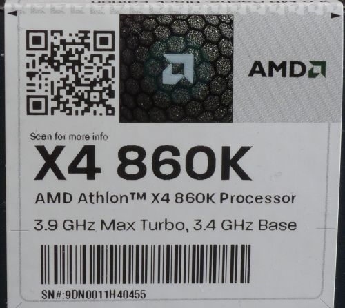 According to postscript on AMD's website, some of the Athlon X4 860K boxed processors i in the period from July to October 2014 was delivered with wrong labels that mislead consumers regarding the processor clock frequency.