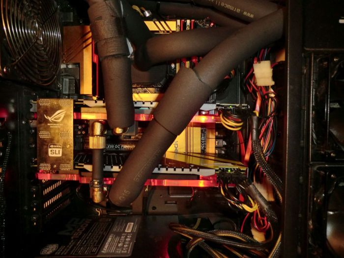 German overclocker Punk Sods decided to issue additional cooling liquid in the system - with the help of the so-called Peltier modules. The two graphics cards GeForce GTX 1080 and a processor Core i7-5960X, overclocked to 5.06 GHz, coexisted with the coolant temperature of 21.7 degrees Celsius.