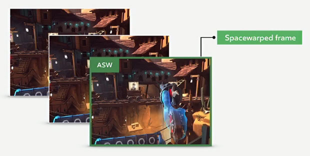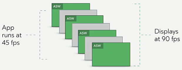 If the system can not cope with the rendering of frames at a predetermined minimum speed of 90 FPC, then based on the analysis of two painted frame is a synthetic intermediate block ASW.  Rendered images and footage ASW alternated, so that the actual system produces only 45 frames per second, and the display shows all 90 frames.  Thus, the user gets rid of the sickening effect of a disordered change in the frame rate when moving the head.  It also reduces the system requirements for those wishing to buy a helmet Oculus Rifts, which can help spread the news.