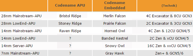 The choice of symbols for embedded processors with Zen architecture   AMD company decided to use the names of predatory birds .
