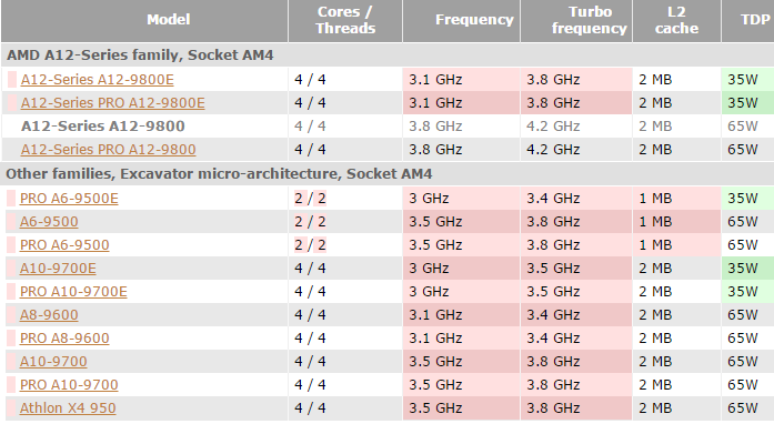 In this case, other processors Bristol Ridge (Excavator) architecture compared with the flagship model A12-9800.  Note that the processor AMD Athlon X4 950  Socket AM4 has appeared in photographs from Chinese sources in early September.  In addition, it is mentioned in the AMD documentation for developers.