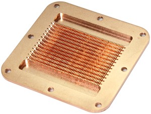Base device has dimensions of 60 x 60 mm and it is made, as usual, made of copper.  Base on the inner side has a "comb", consisting of a so-called microstructures 225 microns thick, which form the microchannels, with both longitudinal and transverse.  According to the manufacturer, so Apogee XL2 base design allows for higher flow rates, providing more efficient cooling (at 5%, as compared to the previous generation waterblock).