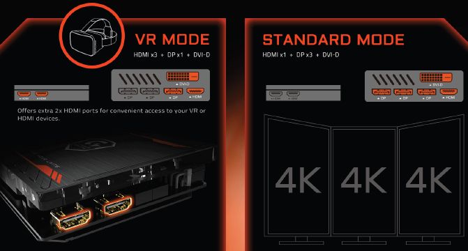 Gigabyte, for example, placed a "stern" of its graphics cards, two additional HDMI ports that can be used to connect a virtual reality helmet. The effective length of the cable at the same time can increase, because it will not have to go around the system unit.