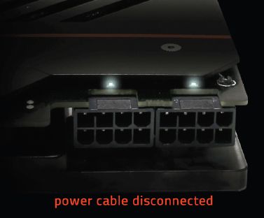 Eight-two additional power connector, which is equipped with this video card, have special LEDs - they attract the attention of the user, if there are problems with the quality of electricity supply. For example, if the auxiliary power cables are simply not connected. Of course, the effectiveness of such a light-signaling devices should be installed to keep the system unit card in sight, but the presence of RGB-illumination means that it is always in sight.