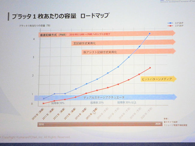 Today, the capacity of the magnetic plate 3.5 inch in diameter close to 2TB.  By 2020, experts believe, wafer capacity for HDD 3,5-inch form factor will be doubled, which will produce 30-terabyte hard drives in seven plates with helium environment (at the conference was the report of the company Western Digital).  However, conventional methods can not be perpendicular recording to achieve a recording density.