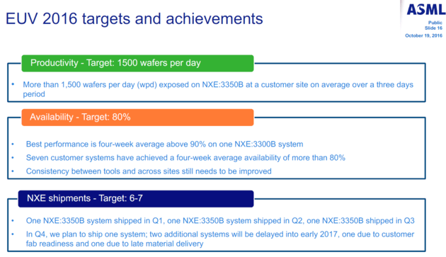 In addition, ASML continues to improve the first version of a commercial scanner EUV - NXE: 3300B.  At the factory setting, the scanner has been achieved within 30 days with 90% efficiency.  Installed at the customer operating items NXE: 3300B demonstrate the effectiveness of just above 80%.  ASML specialists gradually increase the efficiency of previously sold equipment.  Scanners of EUV, recall, may begin commercial operation at the stage of release of 7-nm production, during which they will be used for the manufacture of certain critical layers, and this should happen by early 2018.