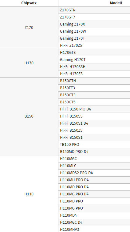 Below is a list of Biostar motherboards, which will be implemented through support Kaby Lake updated BIOS.