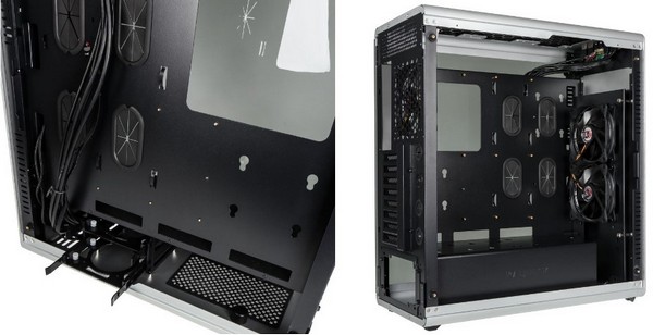 In general, the case is very similar to each other.  They are both made of aluminum (outer panels except the side) and steel (the chassis).  Corps support the installation of the motherboard up to size E-ATX, graphics cards up to 340 mm CPU cooling systems up to 180 mm.  The number of expansion slots is equal to eight, and to install storage devices, there are three universal 2.5- / 3.5-inch and three 2.5-inch bays.  Note that the case Asterion Plus also supports the installation of a thin (Slim) optical drive.