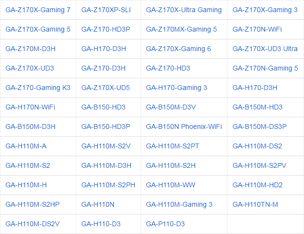 GIGABYTE RELEASED A LIST OF MOTHERBOARDS SUPPORTING CPUS KABY LAKE
