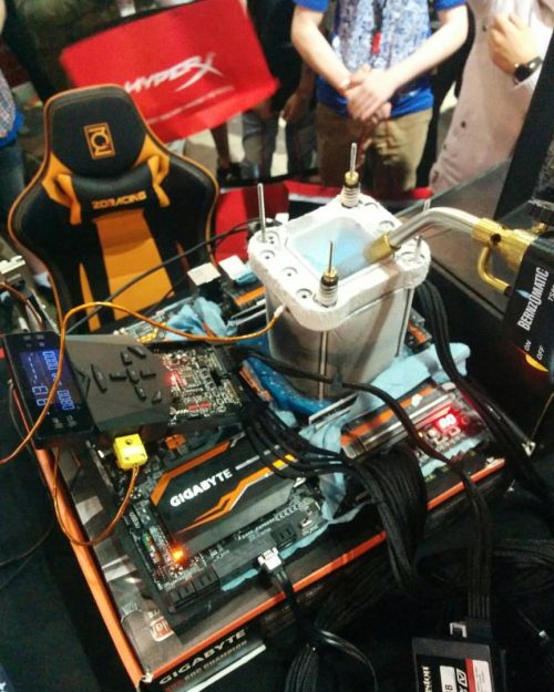 To cool the CPU Core i7-6950X generation Broadwell-E in the Gigabyte X99-SOC Champion motherboard used liquid nitrogen, and to conquer new record abroad need to disable all cores except one.
