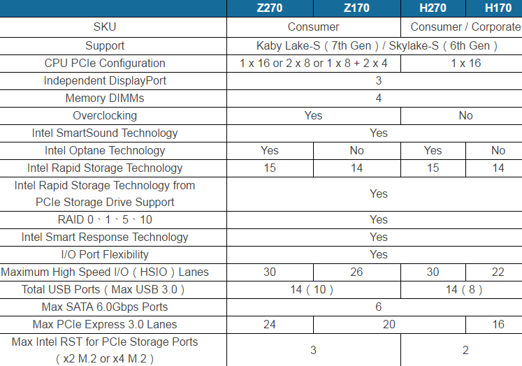 Along the way, the Chinese colleagues suggest that the flagship chipsets Intel Z270 and H270 differ from its predecessors will mainly support Intel Optane SSDs, as well as more advanced version of the Intel Rapid Storage Technology (15 instead of 14).  In addition, four of them will increase the number of supported PCI Express 3.0 lines - up to 24 at the Intel Z270, 20 from Intel H270.