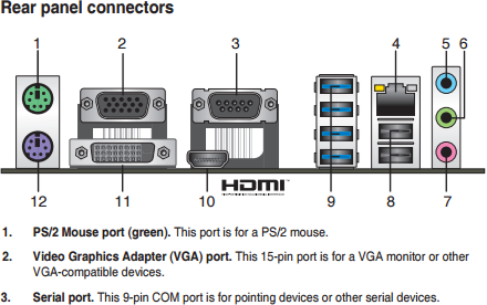 On the rear panel of the motherboard you can find the serial port - a rare option for our day.