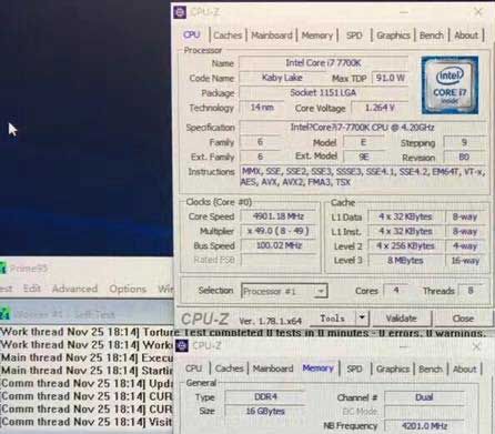 By the way, the Thai site Zolkorn also clocked serial instance Core i7-7700K with an air cooling system, and at a voltage of 1.29 was able to achieve stable operation in Prime95 at the frequency 4.9 GHz.