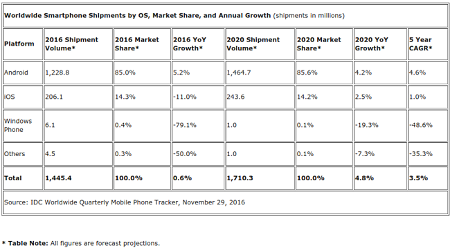 Analysts also made its forecast for 2020. They expect that in 2020 smart phone sales reached 1.710 billion units, showing a 4.8 percent increase year on year. At the same time 85.6% of them will be running Android. 14.2% of the market share will fall to the iPhone. Windows Phone and other mobile operating system will get only 0.2% and their supply will fall significantly compared to the 2016 year. Related Products :