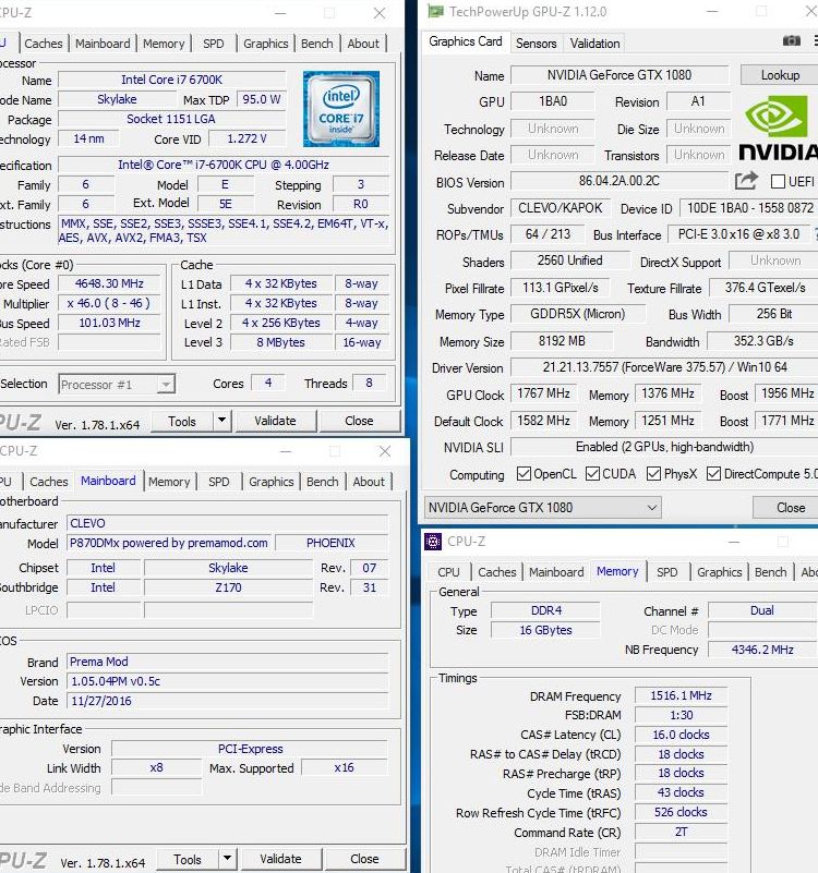 If earlier overclocking laptop components provided removing the body, modifying the power system and the use of ingenious devices for efficient cooling, the fashion for gaming laptops greatly simplifying the task. At least the American enthusiast Johnksss recently overclocked Clevo brand laptop, equipped with a pair of graphics cards GeForce GTX MXM 1080 version and a desktop processor Core i7-6700K. Last, according to the author, it was overclocked to 4648 MHz without modifying the
