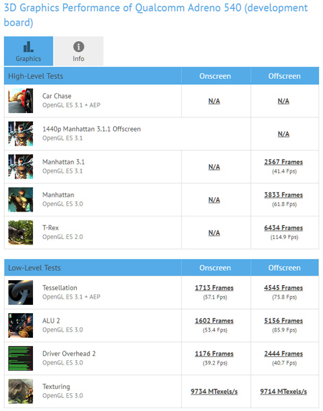 According to PhoneArena, single-chip platform Qualcomm Snapdragon 835 was tested in the benchmark GFXBench. As expected, it includes eight cores clocked at 2.2 GHz and graphics accelerator Adreno 540. The graphics Adreno 540 by about 30% performance Adreno 530 graphics controller, which is part of Qualcomm Snapdragon 821 chip.