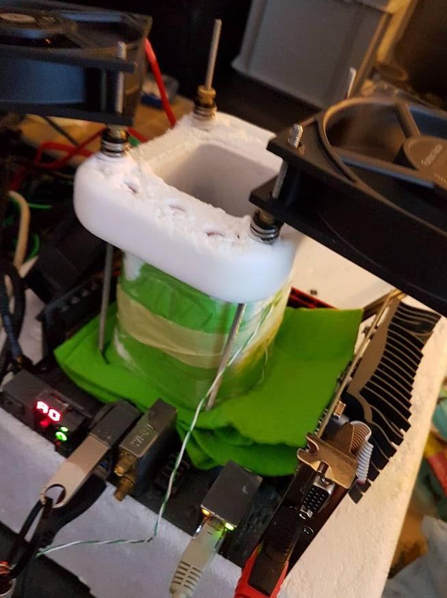 For cooling the processor was used liquid nitrogen two additional fan to be secured to the tank mounting racks to the Asus Maximus VIII Impact compact motherboard.