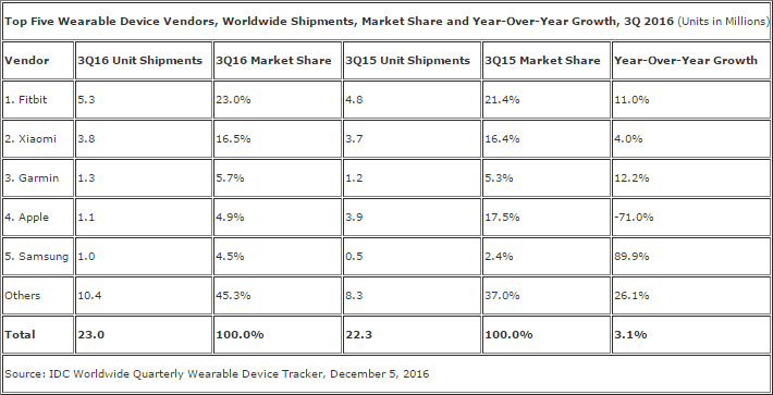 IDC experts stated that in the third quarter 2016 Apple company sold a total of 1.1 million. "Smart" watches Watch, and is 71.6% lower than a year earlier.  His statement echoed IDC experts in early December, but already in the new report.  He makes it clear that the dynamics of the market of portable devices determine the simplest products like bracelets for supporters of an active lifestyle, which form 85% of sales.