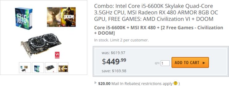 Open press release reported that "the Radeon and Intel join forces" to offer customers one of the popular American online store best price on a combination of CPU Core i5-6600K, the video card MSI Radeon RX 480 production and kit of two games: Civilization VI and DOOM.