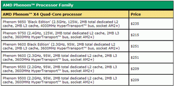 Yesterday three processors occupied the position $215 in AMD price list : both energy versions phenom X4 9750 (2.4 GHz) and Phenom X4 9650 (2.3 GHz). Today the situation was fixed
