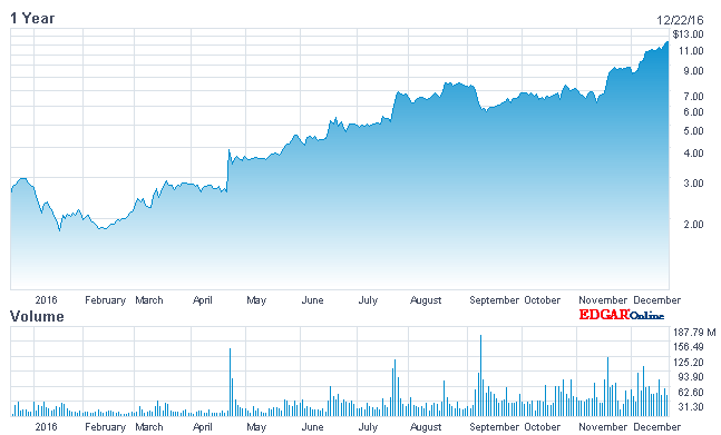 AMD shares for the year increased by four and a half times (2016-12-22)