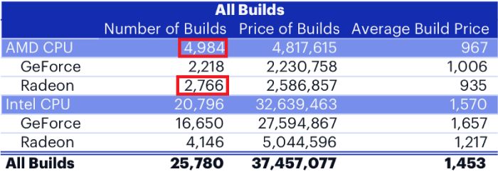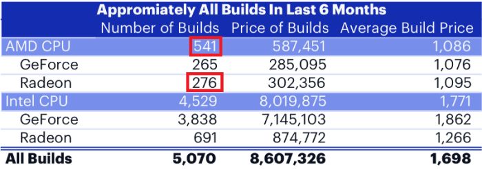 According to recent study .  It turns out that users are more willing to choose the central processors Intel (81%) than AMD's (19%).  If the cut sample only until the results of the past six months, the share of AMD processors will be reduced to 11%.    Even AMD representatives at recent events has repeatedly recognized that in the segment of productive processors the company's market share has shrunk considerably in recent years.  The server segment, for example, it generally does not exceed 1%.
