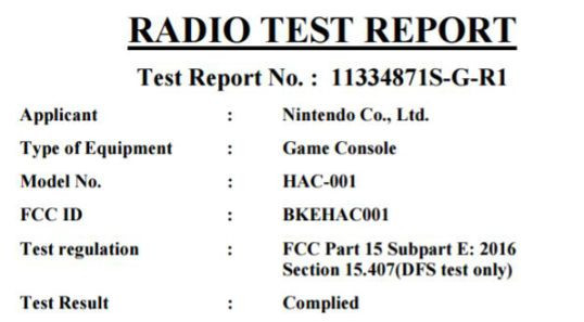 NINTENDO GAME CONSOLE SWITCH HAS PASSED FCC CERTIFICATION