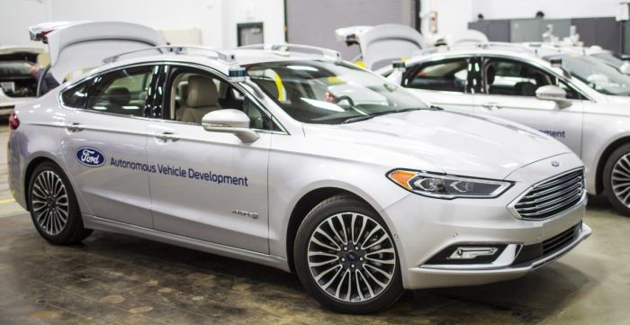 Ford released onto  streets or closed polygons two US states prototypes  based on the Fusion hybrid sedans . First-generation prototypes were equipped with four "lidar", fixed on the roof of the car. Such an arrangement of sensors used by many testers as it allows  to scan the space around the car without bumping into obstacles in the form of elements of their own body.