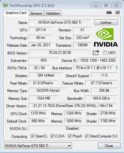 GEFORCE GTX 560 TI OVERCLOCKED TO 1370-5300 MHZ