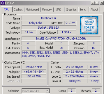 To do this he had to overclock the Core i7-7700K processor with two active cores to frequency 6934 MHz. The processor was cooled with liquid nitrogen.