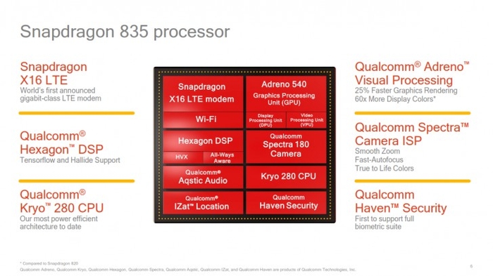 As GSMArena reports, Snapdragon 835 Qualcomm has become the first commercial product that is manufactured using the new 10-nanometer manufacturing process FinFET Samsung. It also became the first mobile processor with support for Bluetooth 5.0. The chip supports VR, and Windows 10.