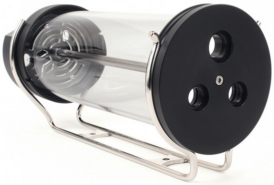 EK Water Blocks Company has introduced a new version of its cylindrical tank EK-RES X4 250 coolant. The technology, called EK-RES X4 250 (R2.0), differs from the original tank insert new improved design prevents the formation of eddies, as well as the presence of nickel-plated brass mount in the middle that holds the top and bottom of the tank cover.