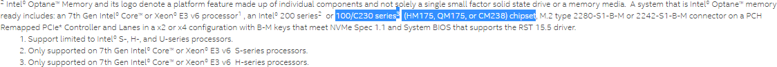 Until now, support Optane drives based on 3D XPoint memory type was presented by Intel as one of the few innovations chipsets two hundredth series, but colleagues found that under certain conditions support Optane drives and chipsets provide a "cell" series. However, in the official summary we are talking only about Intel HM175, QM175, or CM238 in conjunction with processors Kaby Lake-H or Xeon E3 v6.