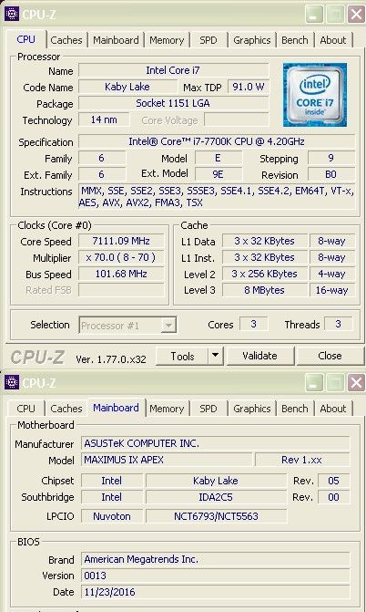 Core i7-7700K at a frequency of 7111 MHz updated record SuperPI 32M