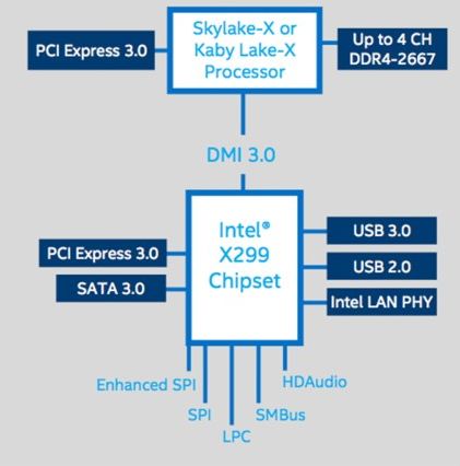 Recall that motherboards based on Intel X299 shelter processors LGA 2066 two families: Skylake-X and Kaby Lake-X. The last will be a kind of "starting phase" with the purchase of this class system, they will offer just four cores, but the free multiplier, and dual-channel DDR4-2667 memory support . TDP processors Level Kaby Lake-X does not exceed 112 watts.
