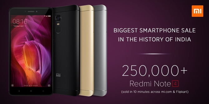 IN INDIA, XIAOMI REDMI NOTE 4 FIRST BATCH SOLD OUT IN 10 MINUTES