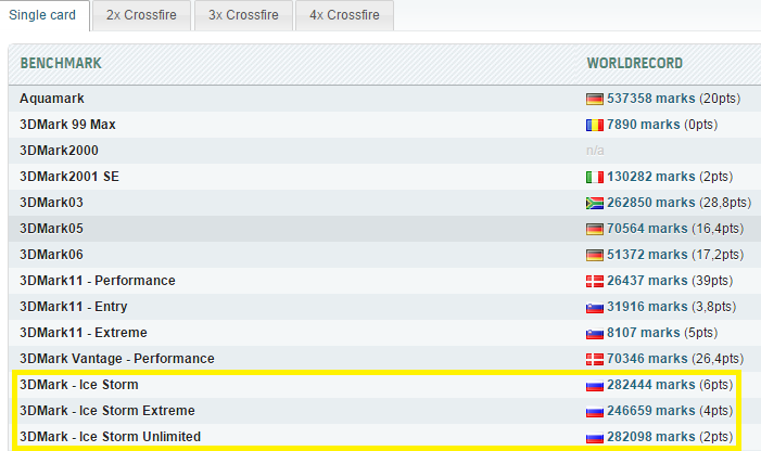 The pair Radeon R9 290 allowed the Russian to set 9 records in the model standings (2017-03-26)