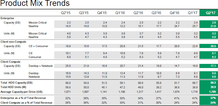 The average selling price of Seagate hard drive - $ 66, for the year it grew by 12%, but remained at the same level with the quarterly comparison.