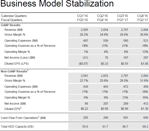 Seagate has published a report for the second quarter of fiscal year 2017, which ended in , December 30, 2016.  The manufacturer was so pleased with the improvement of financial performance, which in the profile dedicated to the presentation of the dynamics a separate table.