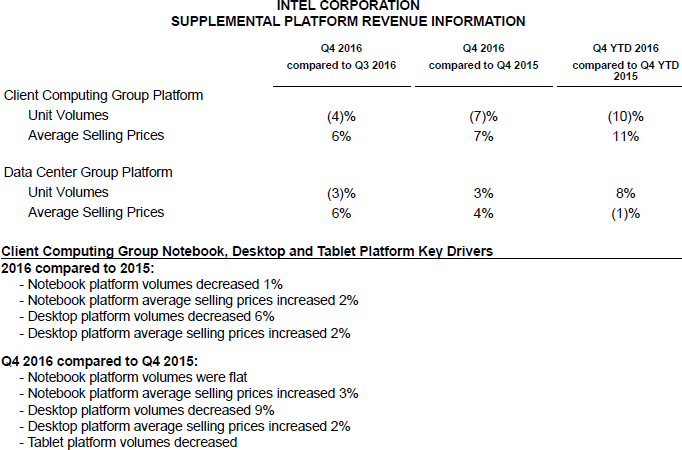 As you can see, the client towards in-kind volumes reduced sales and the average selling price increases. In the fourth quarter of last year, Intel has also noted a decrease in demand for  tablets components  .