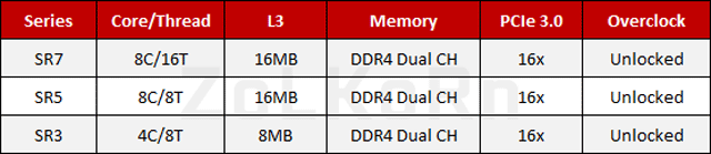 Citing reliable sources resource explains that processors Ryzen SR3 Series will combine the four physical cores and the ability to process eight threads simultaneously.  SR5 Series will offer eight physical cores at a more affordable price than the flagship series SR7, and all because of the number of concurrent streams - older processors can run 16 threads, and "average" - with only eight.