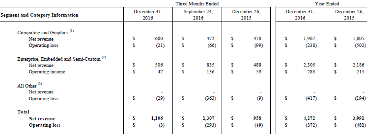 Division Computing and Graphics for the quarter generated $ 600 million., Increasing the corresponding figure by 27% in the quarterly comparison, and by 28% year.  Thank for this need mainly graphics processors, including CPUs sold well a hybrid of the seventh generation mobile processors.