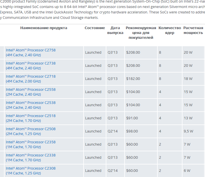 Atom C3000 processors registered in the Intel Price List (2017-08-19)