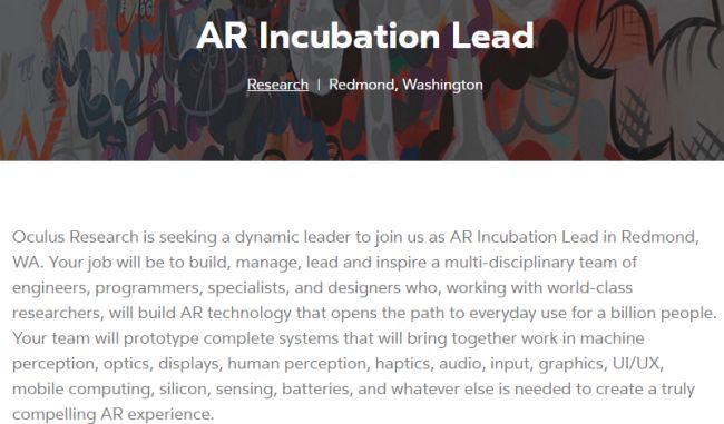Oculus VR is looking for a project manager to develop augmented reality devices (2017-02-08)