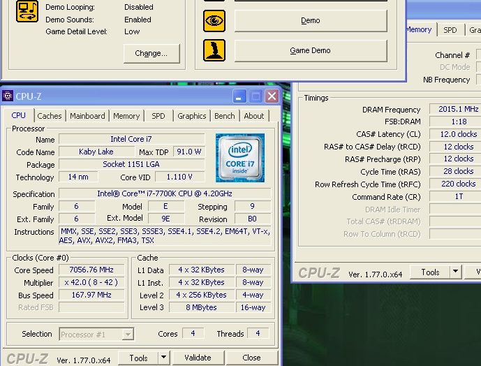 The system set a new World Record 3DMark2001 SE  , with the direct participation of GeForce GTX 980 Ti, which worked at the frequencies 1076/7012 MHz.  The CPU Core i7-7700K overclocked to 7056 MHz with the preservation of the activity of all four cores, but without Hyper-Threading.