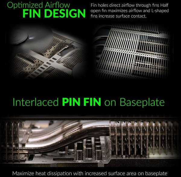 The new iCX cooling system fans run independently of each other.  Since the rotation speed of the left fan (located closer to the video output panel) depends on the temperature of graphic video processor, while the right fan speed is linked to the temperature of the memory chips and power system. In addition, the radiator fins form has been modified , which according to the manufacturer should also help to improve airflow and increase cooling efficiency.  In addition, there was a redesign back and front plates, which will also counteract overheating, according to developers.